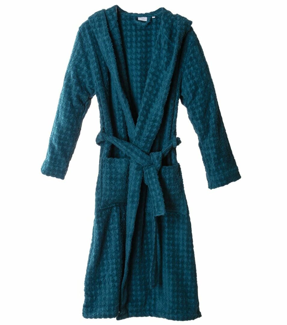 Accappatoio Svad Dondi unisex con cappuccio in puro cotone con trama jacquard a motivo “pied de poule”.