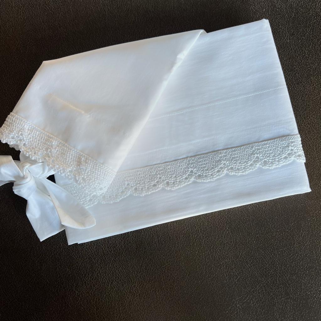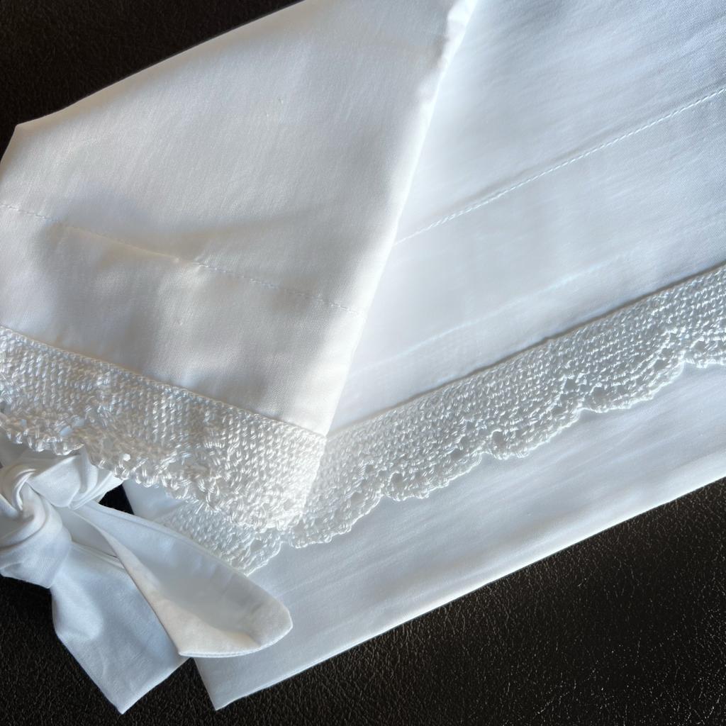 Realizzato in percalle di puro cotone e pizzo.