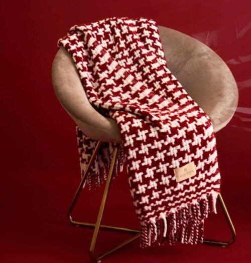 Caldo plaid Biancoperla in fantasia pied de poule con frange