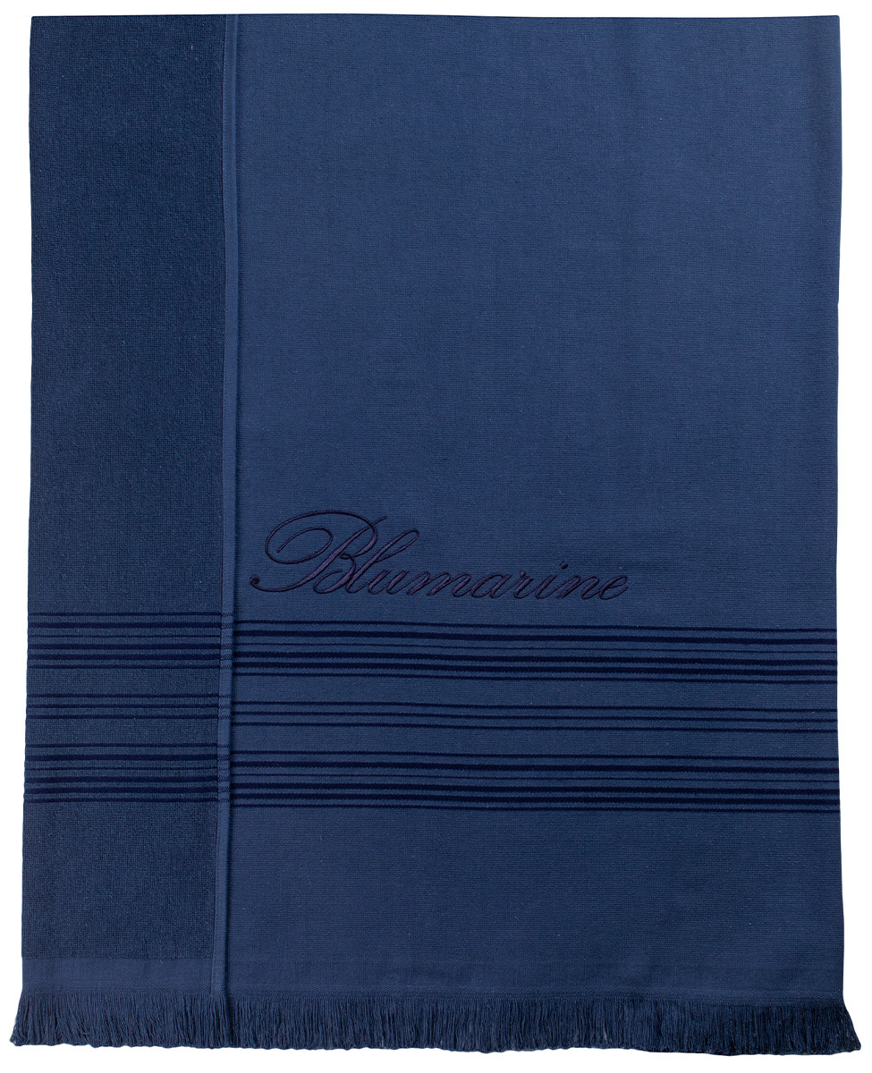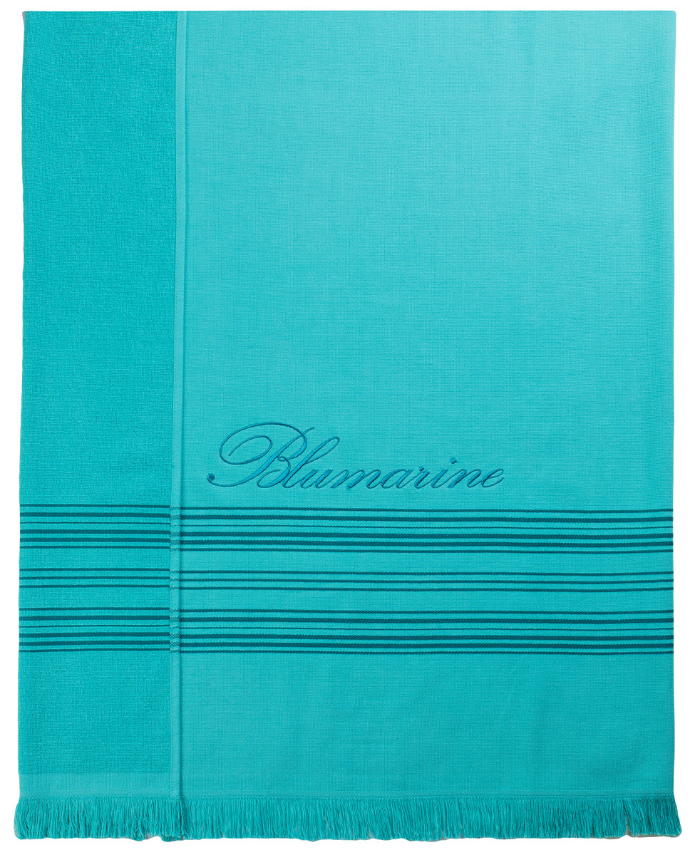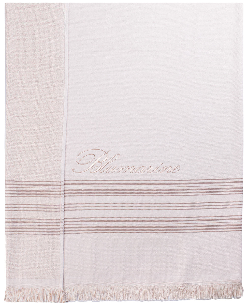 Telo mare tinta unita con doppie righe orizzontali tinto in filo e logo Blumarine ricamato, fronte liscia e retro in micro-spugna riccio.