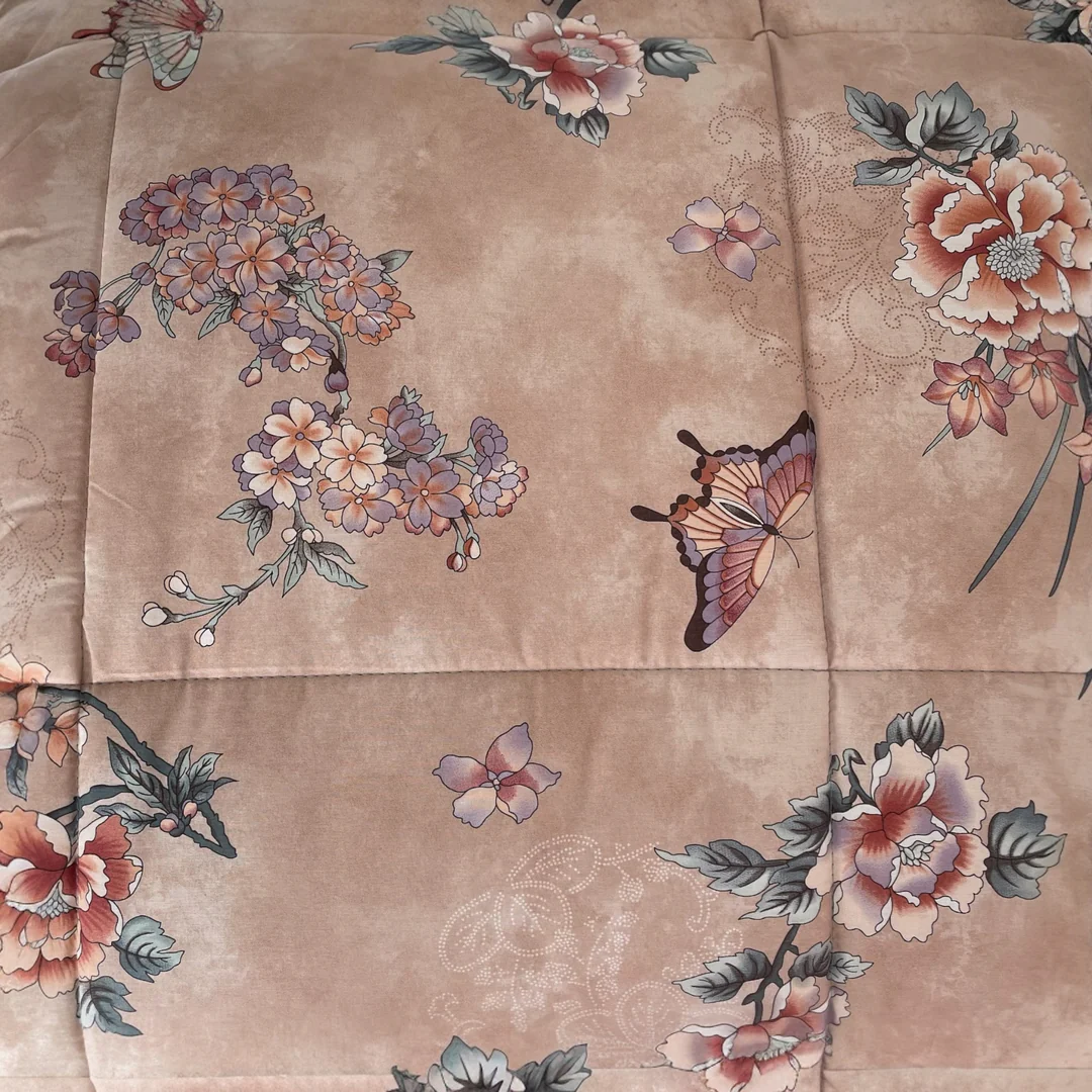 Trapunta con fronte e retro in 100% cotone, 57 fili al cm2; imbottitura in 100% poliestere da 320 g/m2, stampa con colori solidi.